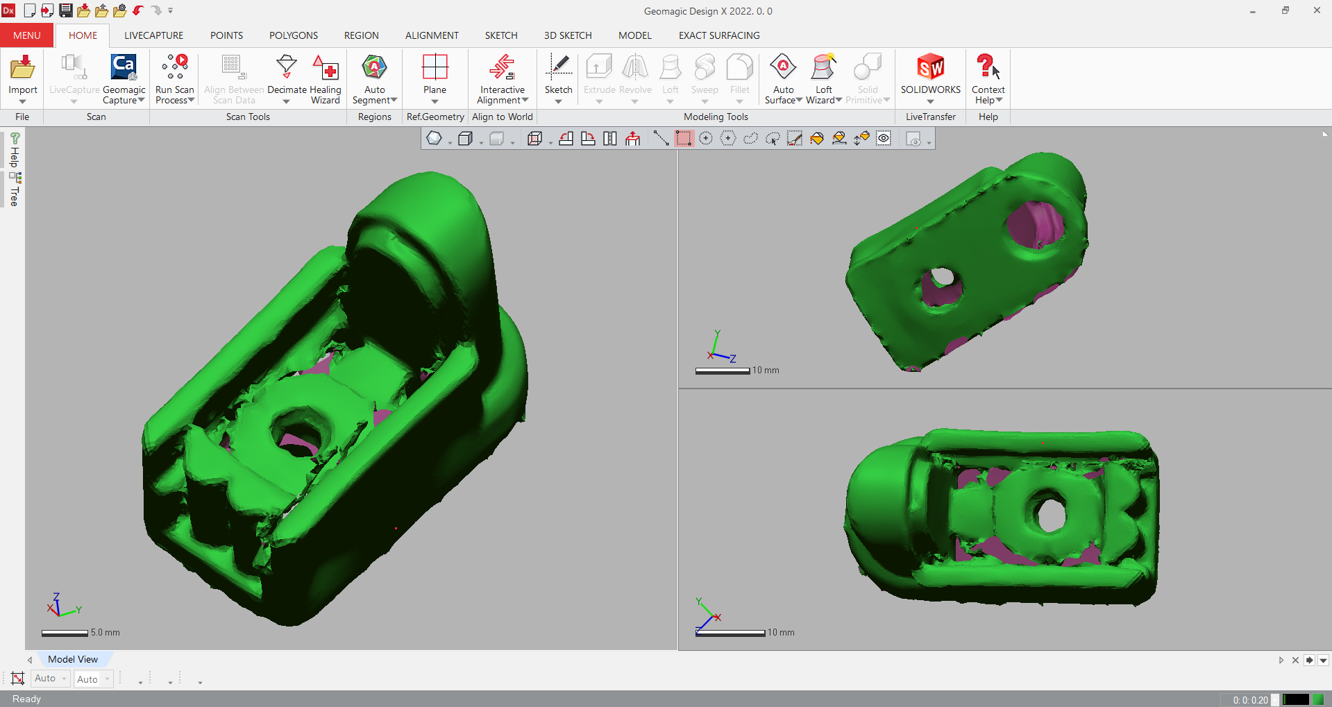 The scanned mesh of the chair stopper, captured via 3D Scanning, provided the basis for reverse engineering.