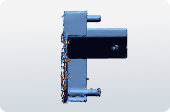Using the scanned mesh as a reference, a feature-based CAD Model of the stabilizer foot pad was created, resulting in a precise STEP file STEP file ready for manufacturing.